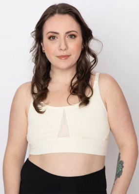The Leslie is not just for recovery, it is a bralette that you will love wearing for years to come. Its underwire free design is gentle enough to wear as incision scars heal, while mesh panels add breathability for added comfort. The high neckline design ensure that sensitive skin or incisions remain undisturbed, promoting healing and comfort during the recovery process. Featuring pockets that easily accommodate pads, breast prosthesis, or lightweight breast forms, the Leslie Bra provide customizable comfort to suit your individual needs. Plus, it is eligible for insurance coverage, making it an accessible option for those seeking quality surgery garments.The Comfort Revolution with Anaono: