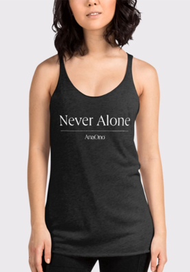 Enhance your activewear collection with Anaono Never Alone Tank. Made with both style and purpose in mind, this tank top is perfect for yoga, lounging at home, or running errands. With its sleek design and meaningful message, the Never Racerback Tank is a closet essential for those who value comfort and community.A Symbol of Support: